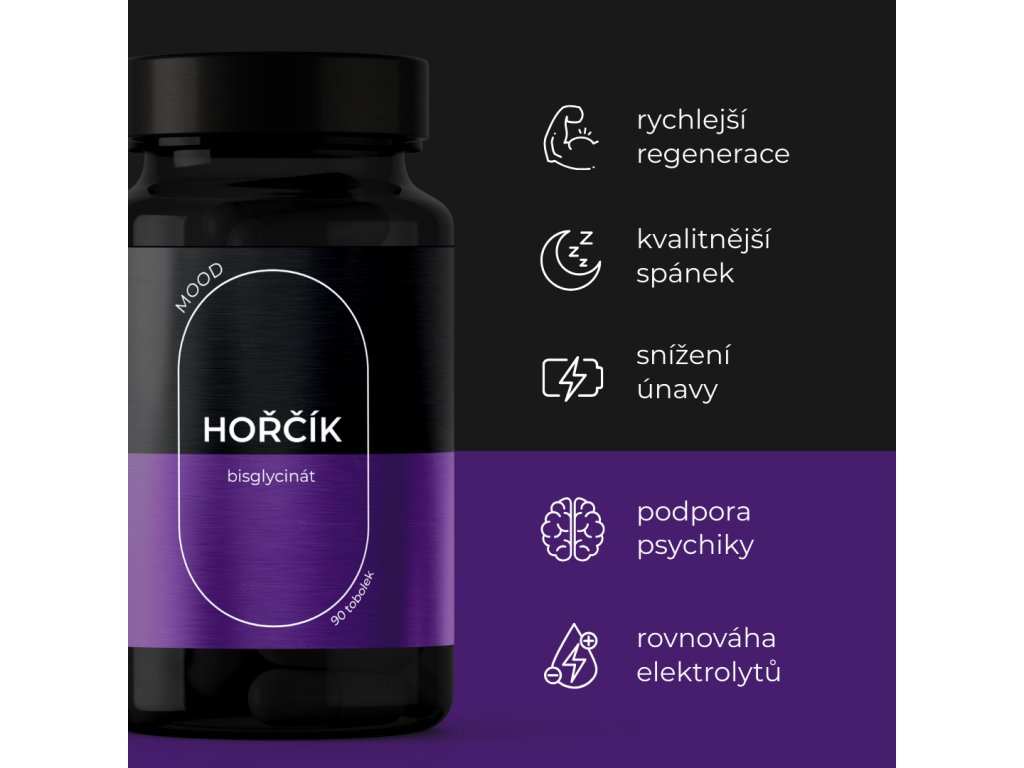 Hořčík bisglycinát patří mezi nejlépe vstřebatelné formy hořčíku. Je šetrný k zažívání a tělo ho umí velmi dobře využít. Díky tomu se rychle dostává tam, kde je ho potřeba – do svalů, nervů i mozku. Pomáhá s regenerací, stresem a přispívá k lepšímu spánku a celkové pohodě.