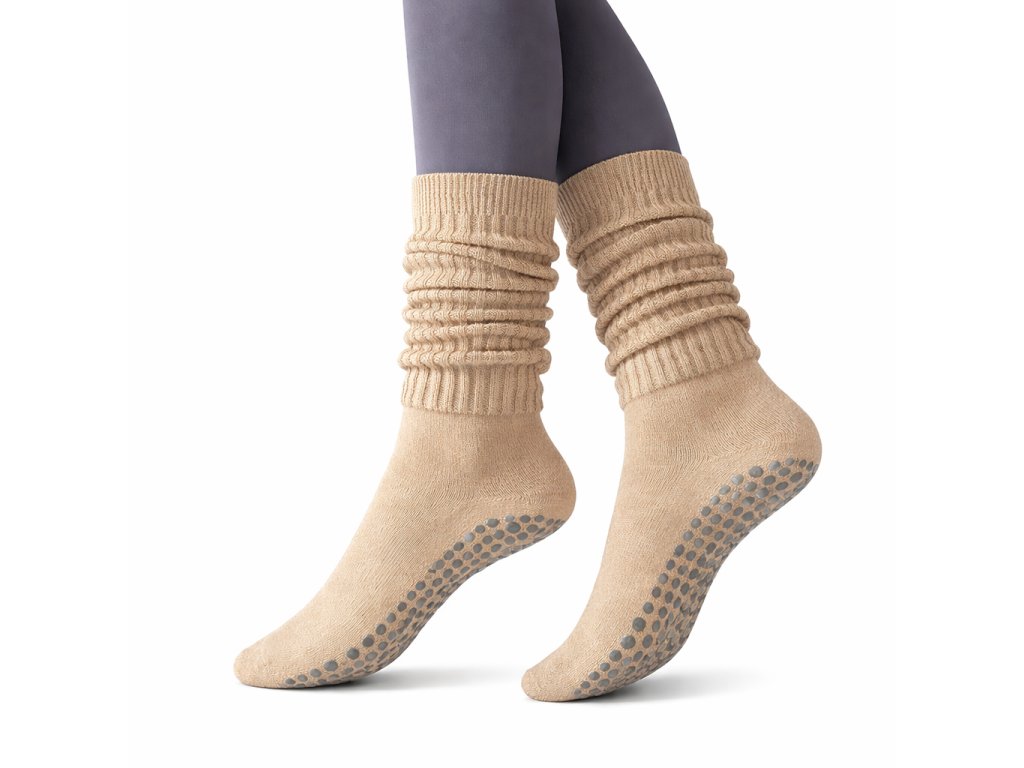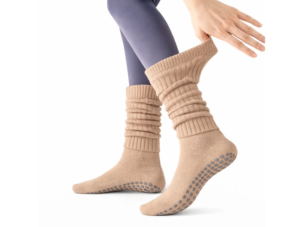 Tyto vysoké shrnovací ponožky jsou vhodné pro všechny druhy pohybu, jako je jóga, pilates, ale i tanec. Díky protiskluzové úpravě v oblasti chodidla se nemusíte bát uklouznutí na jakémkoli povrchu. Můžete je používat jako podkolenky, nebo si je dle potřeby nahrnout. K dispozici v různých barvách.