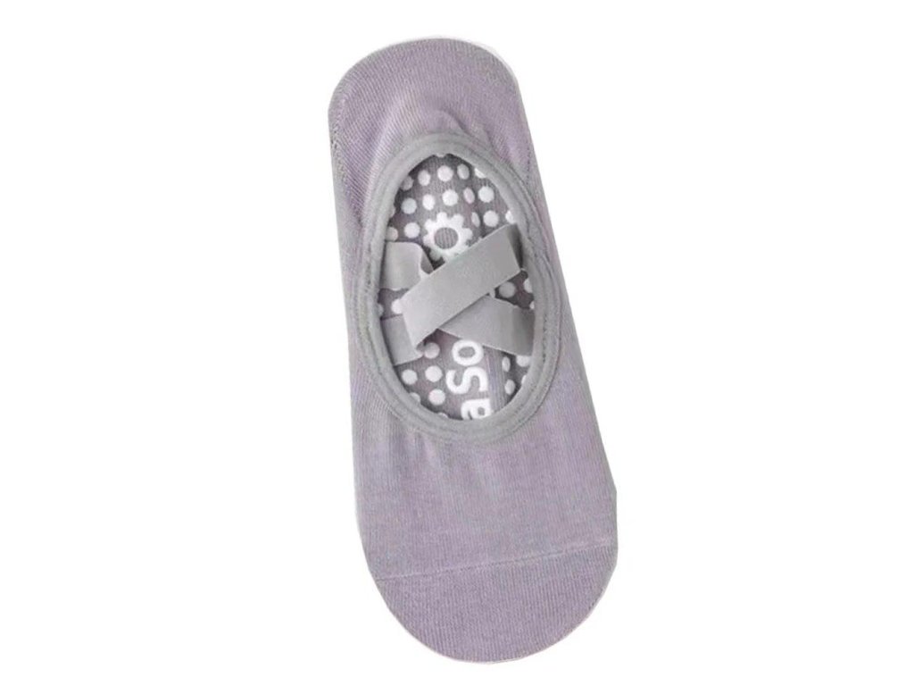 Nízké kotníkové ponožky s praktickými pásky přes nárt a jemným šedým lemováním skvěle padnou a poskytnou jistotu při józe, pilates i tanci. Protiskluzová úprava zaručí stabilitu na každém povrchu. Dostupné v různých barevných variantách.