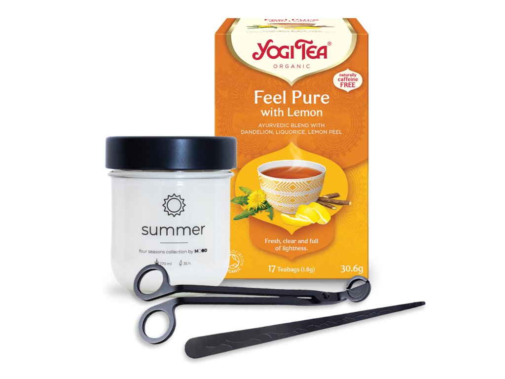Letní voňavá sada vnese do vašeho domova teplé tóny a lehkost dovolené. Malá sójová svíčka MOOD Summer s jemně květinovou vůní mimózy navodí příjemnou atmosféru slunečných dnů, zatímco elegantní nůžky a zhášedlo zajistí stylovou a bezpečnou péči o svíčku. Celek doplňuje bylinný čaj Yogi Tea – Feel Pure, který osvěží tělo i mysl a podpoří pocit čistoty a lehkosti. Ideální sada pro letní relaxaci, chvíle pohody nebo jako milý dárek.