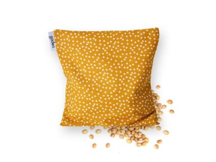 Mini nahřívací polštářek 15 × 15 cm s třešňovými peckami a vzorem puntíků přináší hřejivý klid i těm nejmenším.