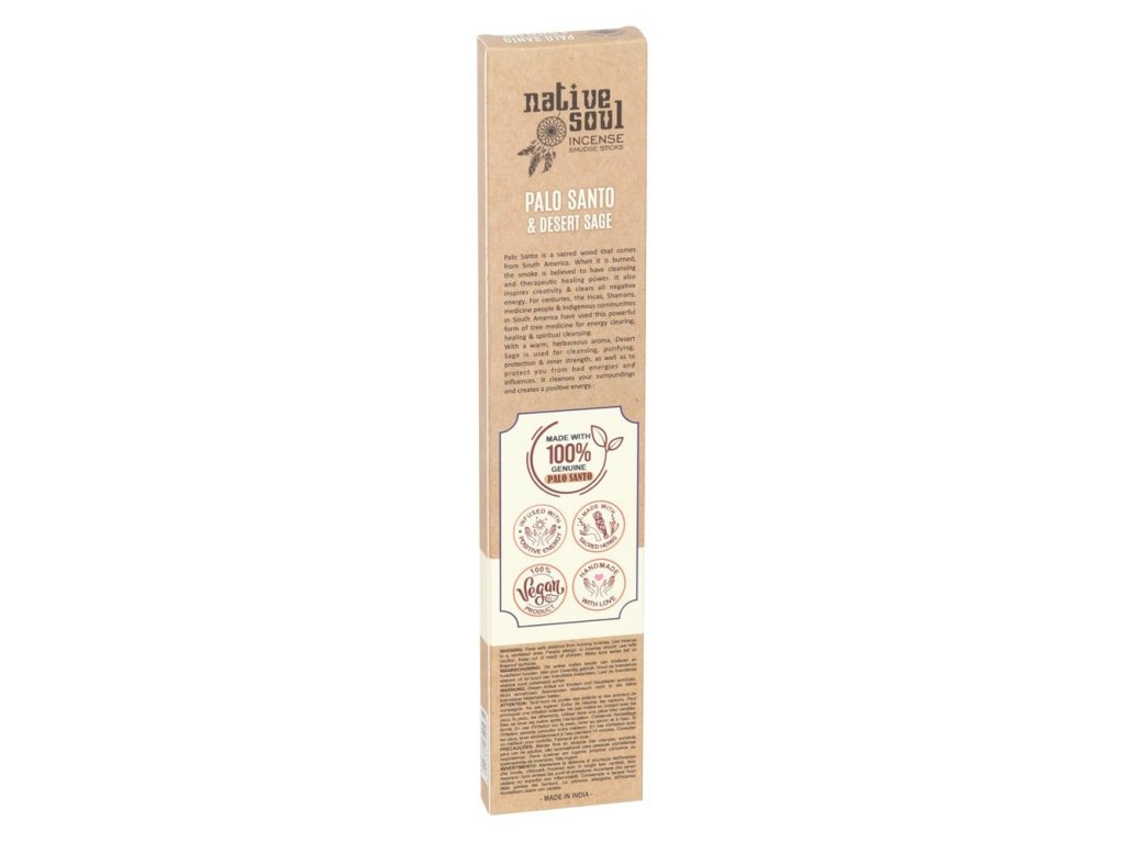 Na rozdíl od tradičních máčených či ručně válených tyčinek vznikají Native Soul tak, že se směs Palo Santa, Desert Sage, pryskyřic, bylin a esenciálních olejů nanáší přímo na bambusové jádro. Výsledkem je pevnější tyčinka, která hoří déle a uvolňuje bohatou, vícevrstvou vůni.