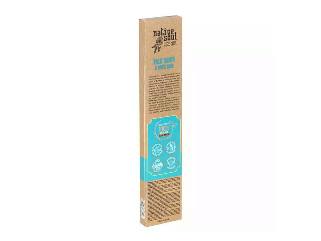 Objevte očistnou sílu vonných tyčinek Native Soul od značky Green Tree. Tyto prémiové masala tyčinky jsou ručně vyráběny z čistých přírodních ingrediencí, aby navodily harmonii a klid. Spojení posvátného dřeva Palo Santo a bílé šalvěje (White Sage) přináší intenzivní bylinnou vůni, která je známá svou schopností čistit prostor, zahánět negativní energii a podporovat vnitřní rovnováhu.