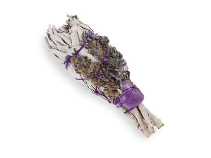 Bílá šalvěj s ametystem pro očistné rituály, uvolnění mysli a posílení pozitivní energie.